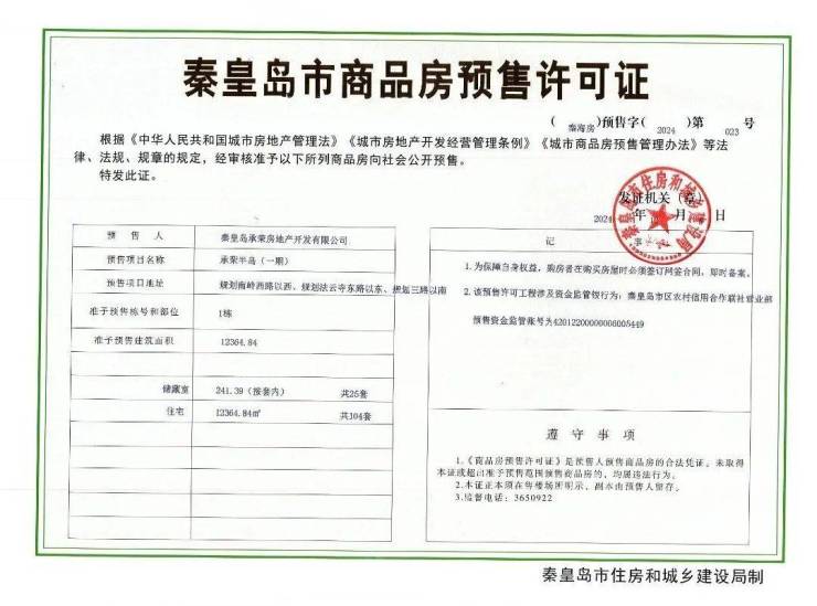 (秦海房)预售字(2024)第020号