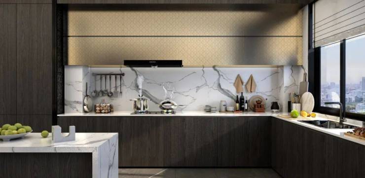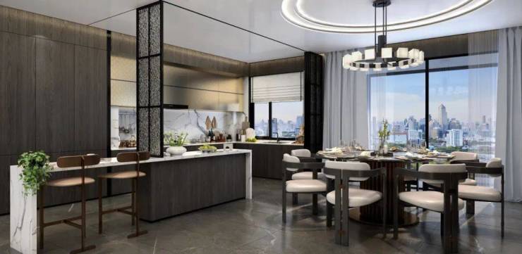 中冶·玉带湾南院独立敞亮的厨房空间带窗通透,烹饪区、操作区、洗涤区和收纳区分区明确,只要小幅度的转身移动,就可以完成整个“洗、切、炒”整个操作动线,让女主人烹饪美食更加游刃有余。
