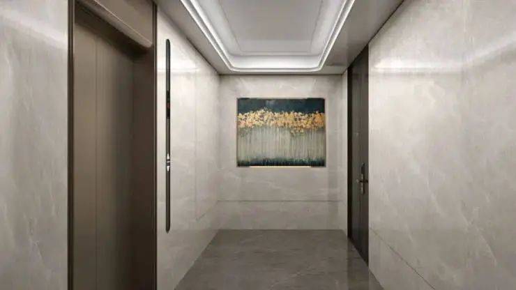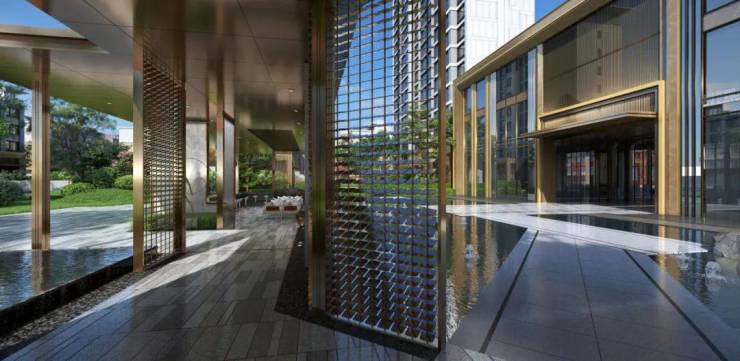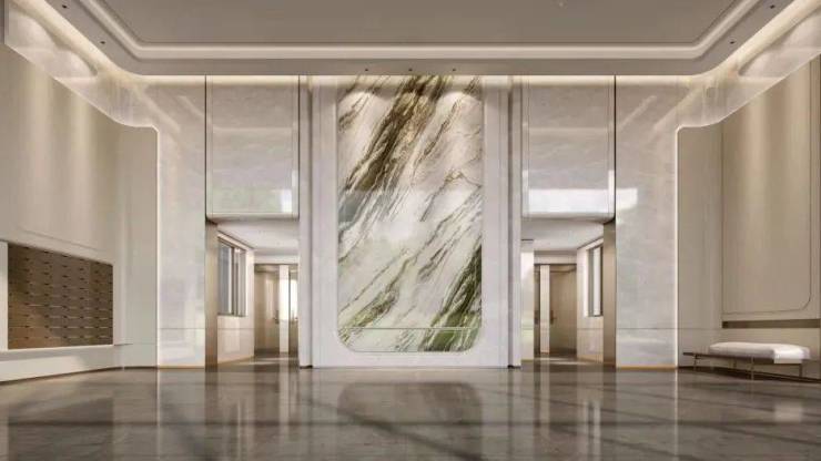 中冶·玉带湾南院,单元首层入户及地下车库入户双精奢大堂设计,精选品质建材,通过灯光的配合,共同营造空间的层次感。