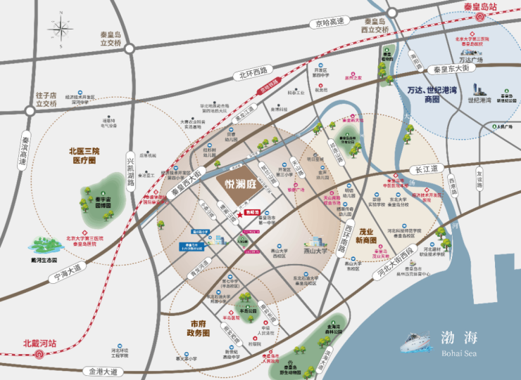 桓秦地产倾力打造建面约9.2万㎡全龄生态宜居典范——悦澜庭小区,择址海港区西部热土,横断山路与纬一路交汇处,周边秦皇大街、长江西道等主干道环绕,交通网络密集且高效,畅达全城。