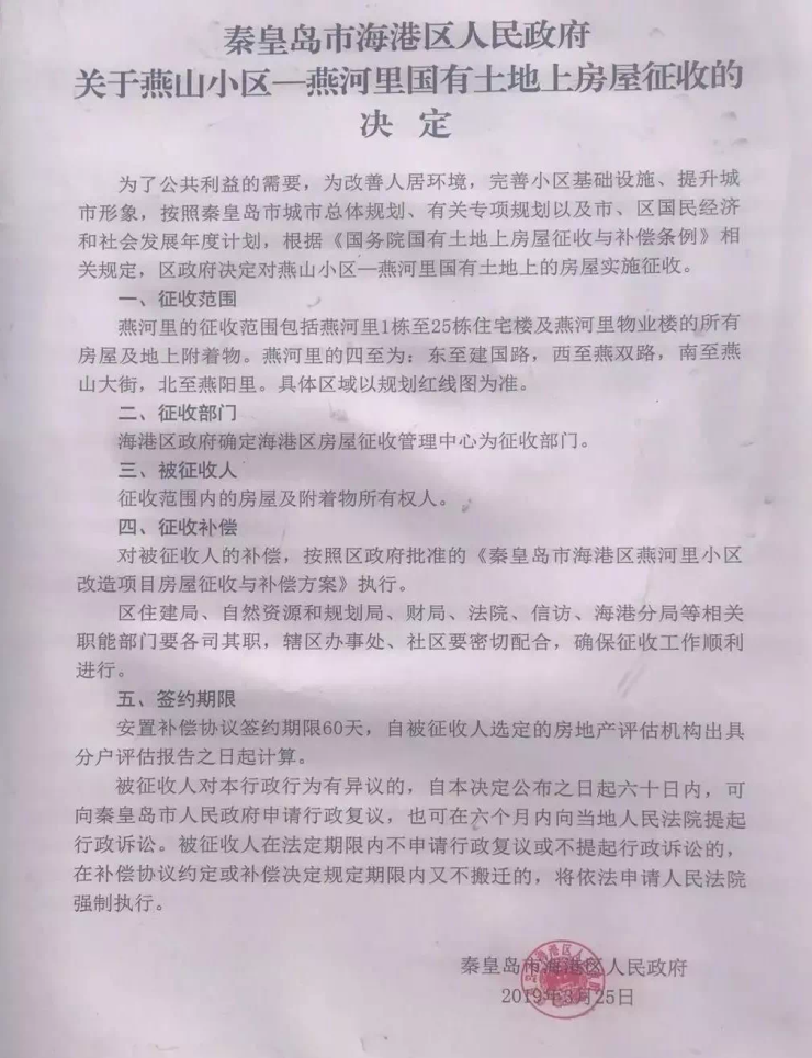 2018年10月,海港区房屋征收管理中心发布的《致燕山小区居民的一封信》对房屋改造意向进行调查登记,这标志着燕山小区改造开始启动。
