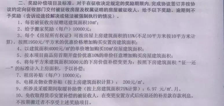 1. 按照住宅房屋上房评估价值的20%给予住宅房屋被征收人奖励。
