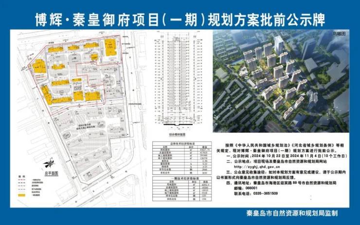 日前,秦皇岛市自然资源和规划局发布《博辉·秦皇御府项目(一期)规划方案批前公示》,该项目位于海港区老市政府片区,拟分多期开发,总建面417618㎡,其中一期总建面183263㎡,详情如下: