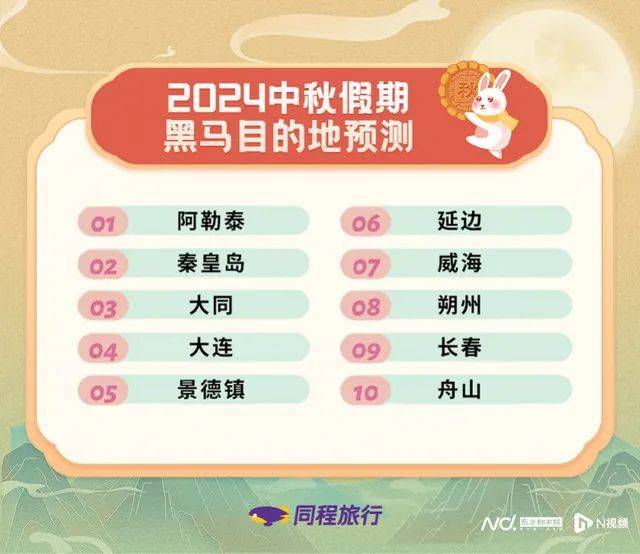 近日,同程旅行发布《2024中秋假期旅行趋势报告》(以下简称“报告”),报告显示,2024年中秋假期,旅游更趋大众化,以赏月文化为核心的“中式夜游”成为今年中秋假期的文旅消费热点,秦皇岛、大连、景德镇、延边、威海、长春、舟山登上中秋假期黑马城市榜单。