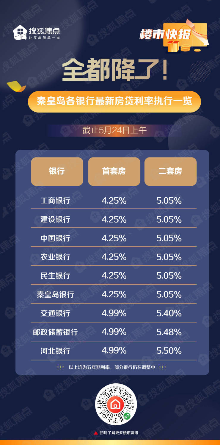 秦皇岛各银行房贷利率较新数据,多数降至4.25%!