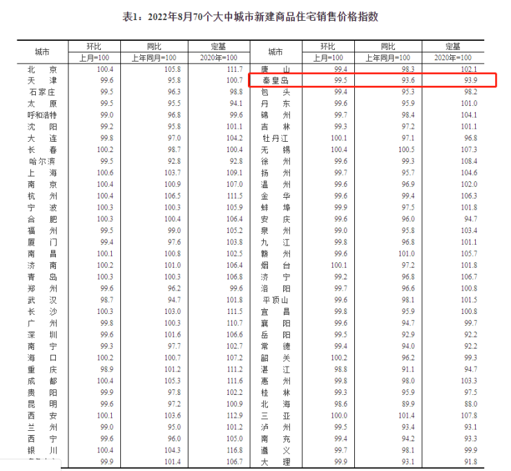 统计局较新数据!8月秦皇岛新房、二手房价格齐跌