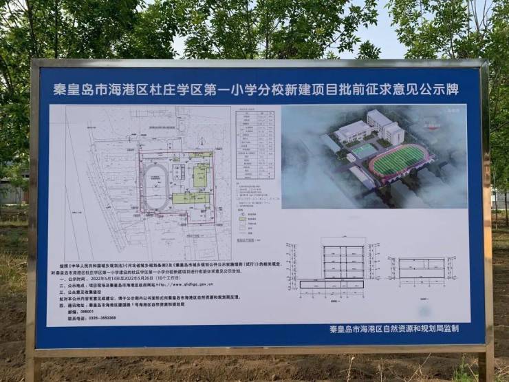 海港区杜庄学区排名前列小学分校总建面8436.46平方米,装配率50%以上。主要建设教学楼、学生餐厅、门卫、运动场等。规划新建4轨制24个教学班,可同时容纳1080名学生就读。