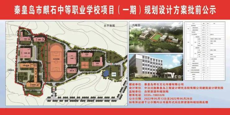 近日,青龙满族自治县政府网站发布秦皇岛市麒石中等职业学校项目(一期)规划设计方案批前公示(肖营子镇王子店村)。