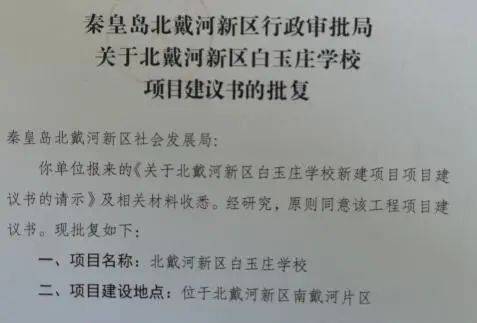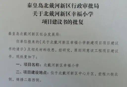 近日,北戴河新区政府网站发布了幸福小学、白玉庄学校项目建议书的批复,两所学校的建设将补充片区的教育资源,完善基础配套设施。