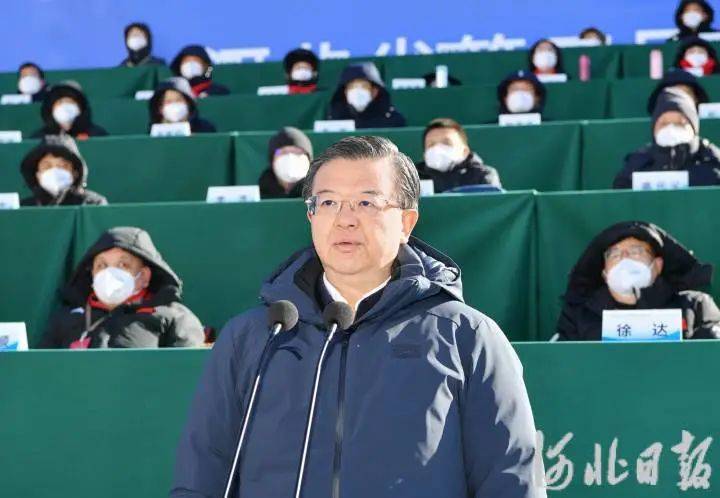 2月4日,河北省第四届冰雪运动会在张家口市崇礼区国家跳台滑雪中心开幕。这是省委副书记、省长王正谱致开幕辞。河北日报记者霍艳恩摄