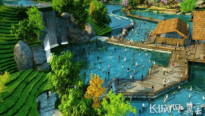 “你看,前面的游乐岛是整个项目的精华所在,包含了五十多种游乐项目。白天可以观光打卡、戏水娱乐、温泉养生,晚上可以观赏不同主题的实景互动演艺,还可以坐着月亮船穿梭在水幕光门之中来一场奇幻的水乡夜游。”田贺伟自信满满地说。