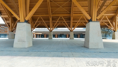 广场左侧是商业区,集合了餐饮、文创、休闲等各种业态,正在进行外立面的装饰。由36个不同风格的民宿组成的 “七里宿集”和8栋体验式酒店自带“流量”,采自地下1700米的温泉直接入户。