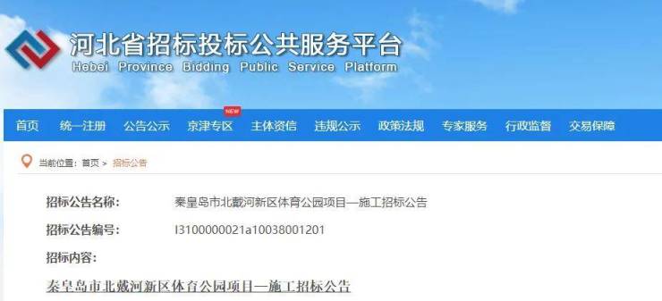 近日,河北省招标投标公共服务平台发布《秦皇岛市北戴河新区体育公园项目—施工招标公告》,该项目由北戴河新区行政审批局以秦北新审批立项字〔2022〕53号批准建设,项目业主与招标人同为秦皇岛北戴河新区金潮建设投资有限公司。