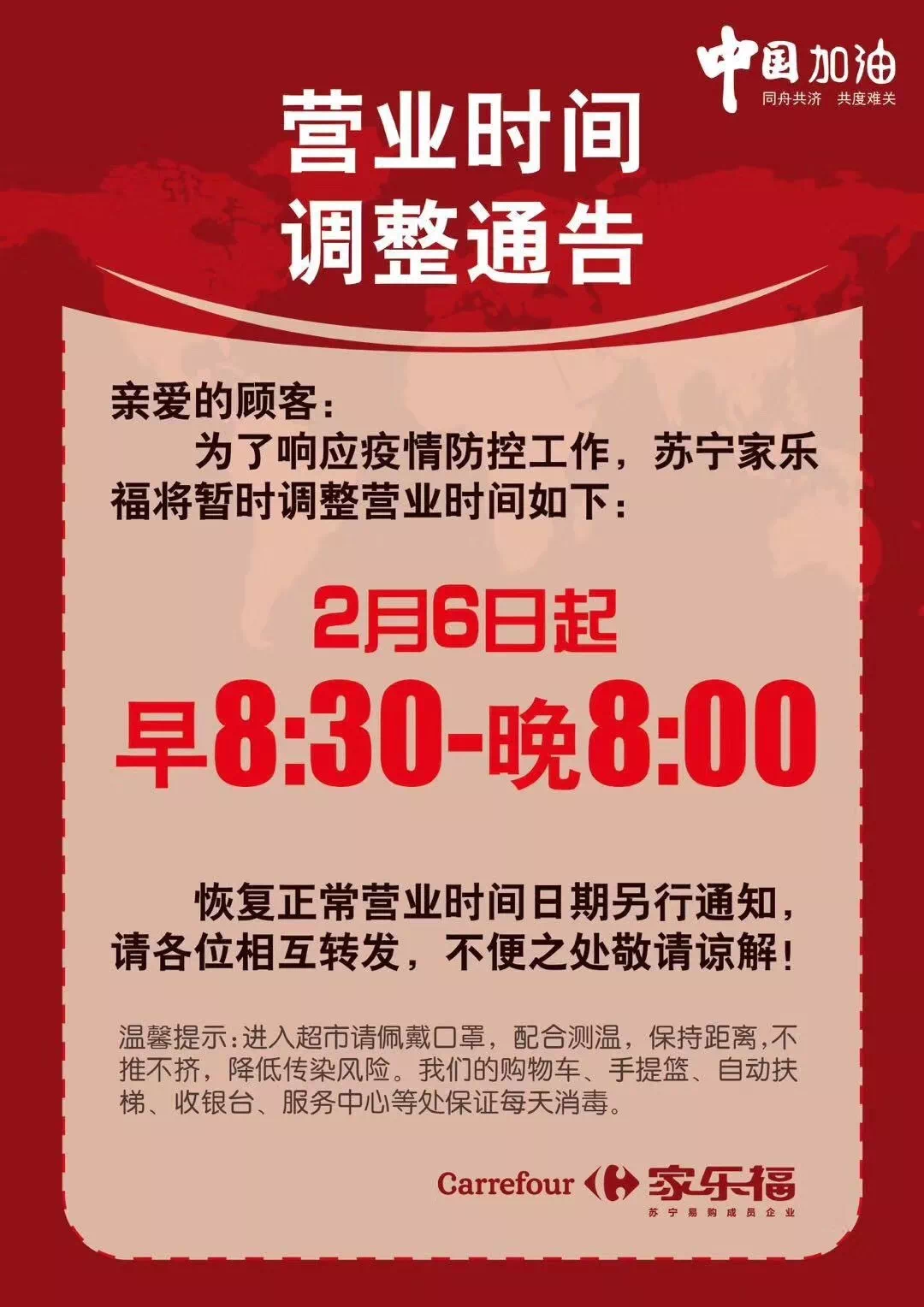 家乐福、世纪港湾购物广场营业时间调整