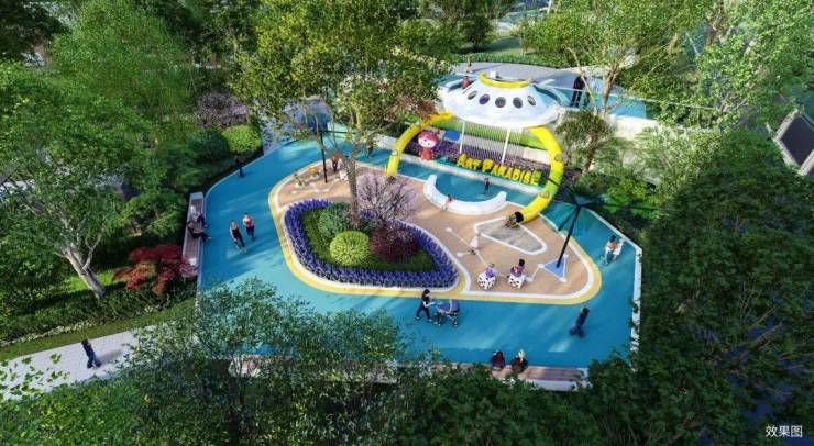 儿童在鸣溪乐园追逐跌水清泉、长者于康养花园品茗对弈、青年沿环形跑道挥洒汗水,立体绿荫覆盖率超越常规平地社区,盛夏园中体感温度清爽安逸。