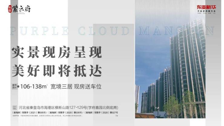 1、本项目推广名为“东亚·紫云府”;开发商:秦皇岛恒硕房地产开发有限公司;