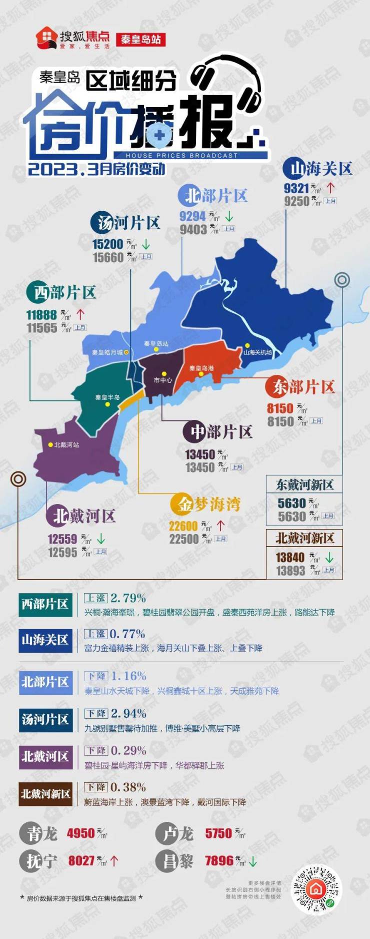 北部片区、汤河片区、北戴河区、北戴河新区及昌黎县房价略有下跌,其他片区与之前齐平。