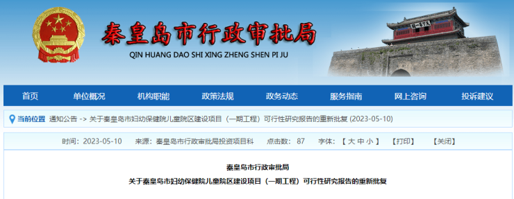最新批复!秦皇岛市妇幼保健院要在西部片区建分院!