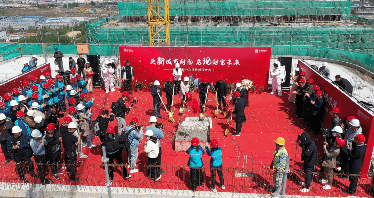 5月7日上午,在噼噼啪啪热闹与欢快的礼炮声中,未来中心喜封金顶。