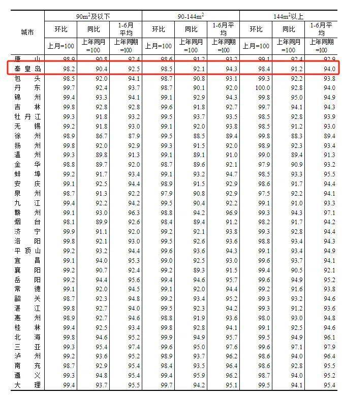 从上述国家统计局发布的数据看,秦皇岛6月份新房、二手房成交价格继续下跌,尤其二手房价格跌幅继续拉大,且仍未显示触底反弹的趋势。
