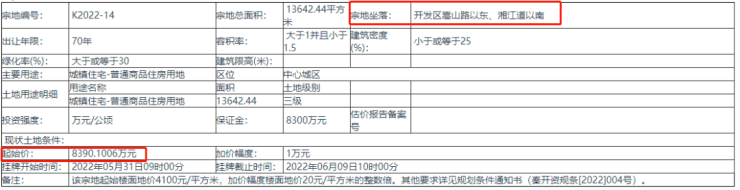 土拍快讯:6月9日上午10时、下午15时,秦皇岛市经济技术开发区的两宗商住地块K2022-14、K2022-15号宗地,分别被中冶置业集团有限公司和秦皇岛本地某开发商拍得。两宗地均为底价摘牌,摘牌价合计约1.69亿元。