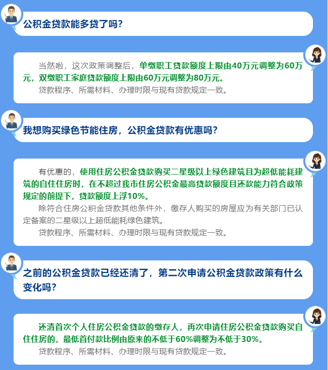 公积金贷款方面,提高住房公积金较高贷款额度,单缴职工贷款额度上限调整为60万元,双缴职工家庭贷款额度上限调整为80万元(可根据实际情况适当调整)。我市缴存人全款购买本市新建自住住房的,夫妻双方父母可以申请提取住房公积金支持子女购房(只限一次)。