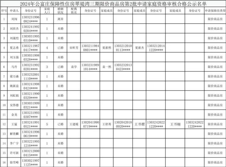 按照秦皇岛市住房和城乡建设局等十六部门关于印发《大力促进房地产市场平稳健康发展的若干措施》的通知,市区两级住房保障部门已完成此次限价商品住房申请人员的资格审核工作。现将审核结果公告如下: