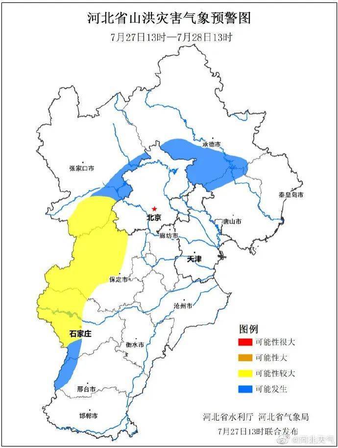 河北省水利厅和河北省气象局7月27日13时联合发布山洪灾害气象预警: