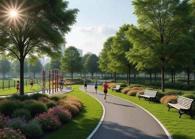 建设规模:拟建2.5米宽健康步道3.5公里,绿地景观面积54396平方米,彩色透水混凝土面积10627.40平方米、透水砖面积2069平方米,防腐木平台136.10平方米,景观小品及设施面积944.50平方米,给排水管线4888.16米,电气管线5181米。