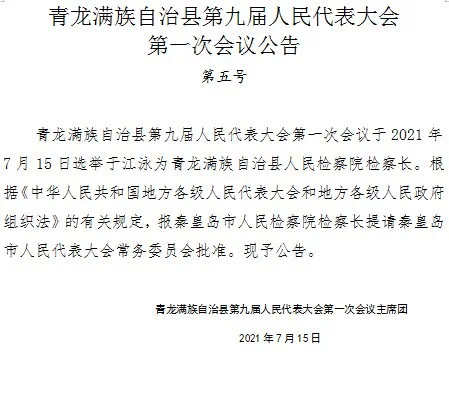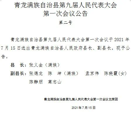 青龙满族自治县较新任命