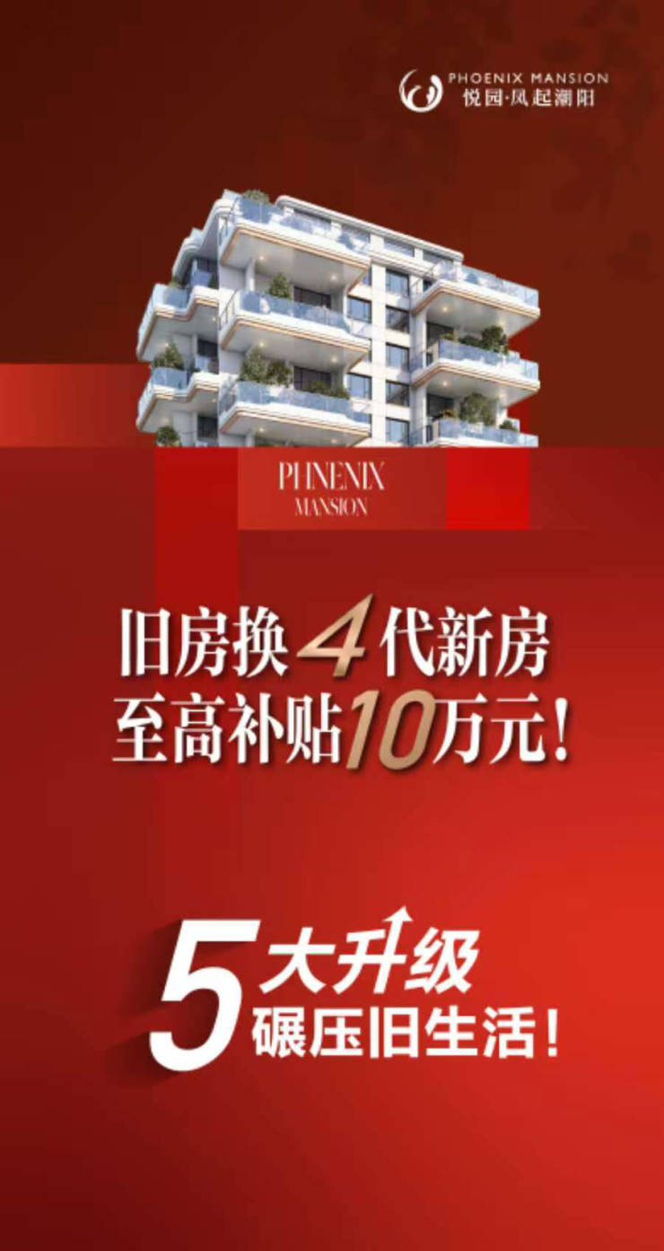 【楼盘速递】悦园·凤起潮阳推出“旧房换四代新房”置换升级计划,以颠覆性政策助力业主焕新生活。