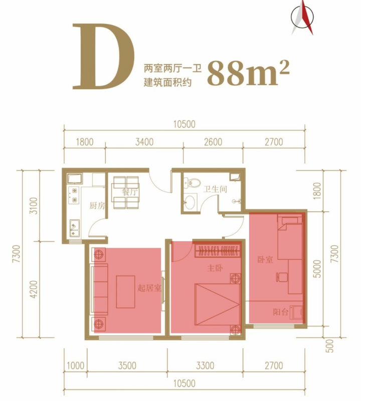 建面约88㎡户型将两间卧室设计作为重点,为居住留足更大的空间,将舒适与美学赋予生活。衣橱、展柜、卧榻、阳台等多个功能区生动串联,构建成一处令人陶醉的私密奢享领域,为居者创造出梦幻般的安逸感。