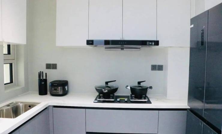 独立敞亮的厨房空间带窗通透,烹饪区、操作区、洗涤区和收纳区分区明确,只要小幅度的转身移动,就可以完成整个“洗、切、炒”整个操作动线。样板间配置欧派品牌橱柜、灶具,更增加了厨房的美观与格调。