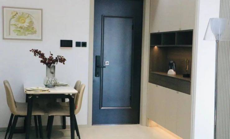 推开入户门,喧嚣的声息顿时变得宁静。左手边的定制通顶玄关,实用且别致。这里是一家人的鞋柜,也是随身衣物的临时驿站,此区域不仅是家人出入的必经之地,更是收纳与美观的完美结合,为整个家增添了一份精致的气息。
