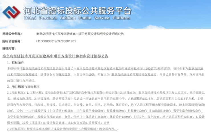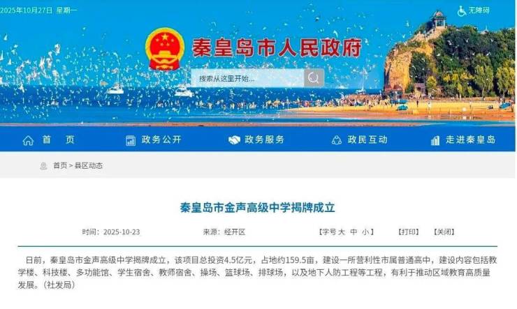 总投资4.5亿!秦皇岛西部新建一所高中!