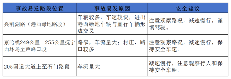 请广大驾驶人朋友途经以上路段时,要注意观察道路情况,严格遵守交通法律法规,控制好安全车距和车速,礼让行人,抵制随意超车、逆行、变更车道、横穿道路等不文明交通行为,杜绝酒驾、醉驾、超速、超载等危险驾驶行为,做到安全文明出行。