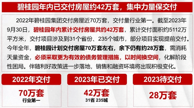 碧桂园今年全年计划交付房屋约70万套,目前仍有约28万套待交付。