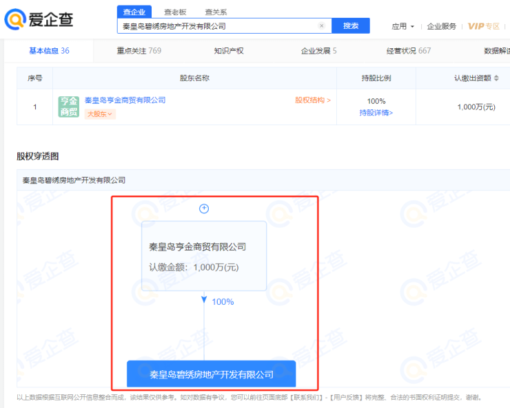 10月13日,碧桂园翡翠公园项目开发商秦皇岛碧绣房地产开发有限公司发生工商信息变更(包含法人变更、投资人变更等),原全资股东碧桂园地产集团有限公司退出,新增全资股东秦皇岛亨金商贸有限公司。