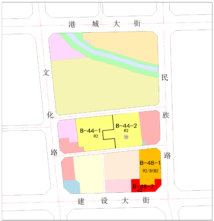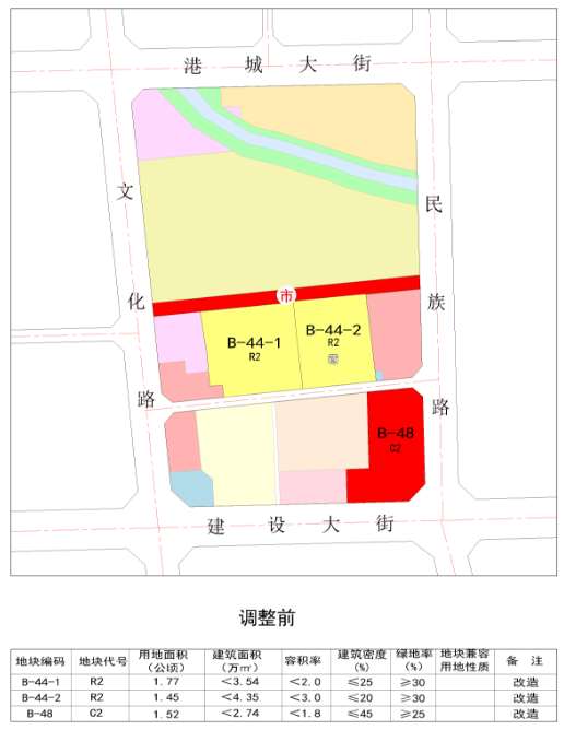建设大街与民族路交叉口西北侧的规划用地,由原来的1.52公顷商业金融用地,拆分为0.41公顷商业金融用地和1.11公顷住商混合用地。