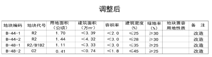 新兴里东侧区域二类居住用地,用地面积由1.45公顷减少至1.44公顷,建筑面积由<4.35万㎡变为<4.32万㎡;