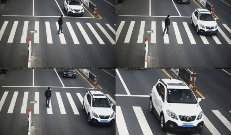 以上公示点位电警设备自动抓拍遇行人正在通过人行横道时未停车让行的交通违法行为。