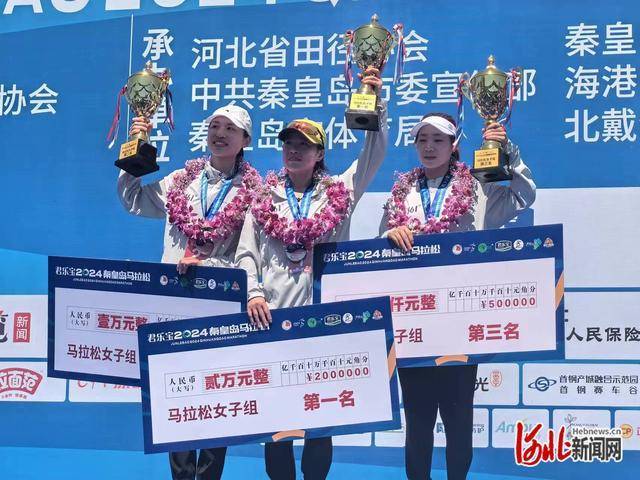 2024秦皇岛马拉松女子组前三名。(黄雨晗/摄)