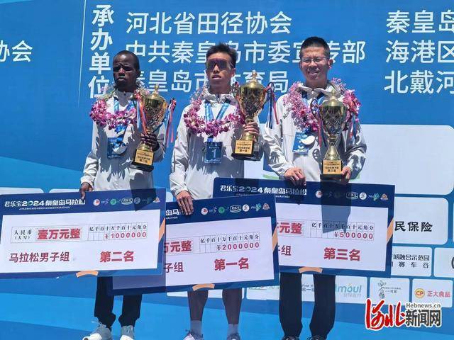 2024秦皇岛马拉松男子组前三名。(黄雨晗/摄)