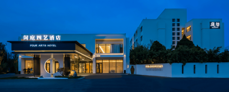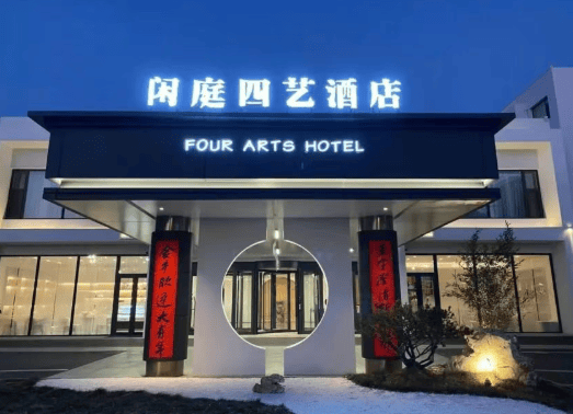 作为高端文化主题酒店,燕大闲庭四艺酒店坐落于燕山大学东区校园内,紧邻茂业天地,酒店由四艺生活馆、艺术馆、体验馆和且思园组成,客房以“焚香”“插花”“挂画”“点茶”为主题装饰,处处透露着宋式极简美学。