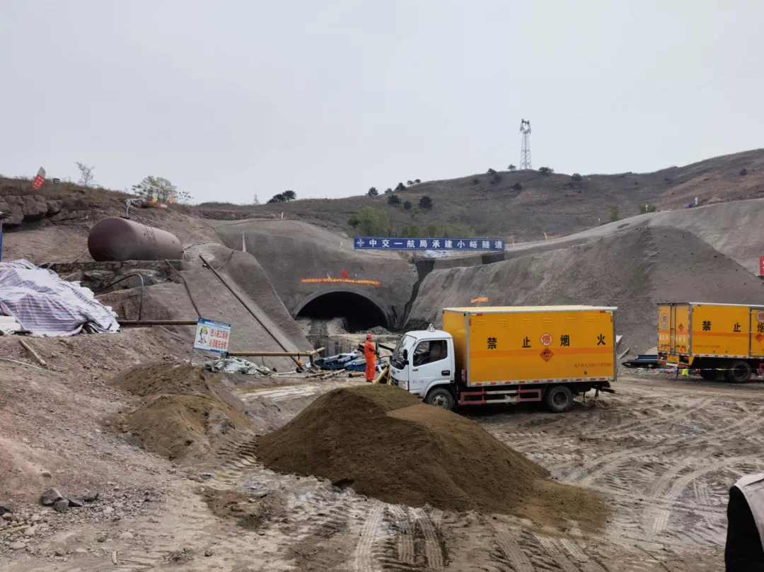 京秦高速遵秦段B6标小峪隧道口施工场景。
