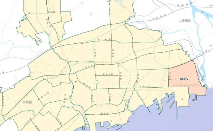 海港区 DB0505 街区,东至卸粮口渔港,南至渤海,西至秦港六公司港口,北至建设大街。
