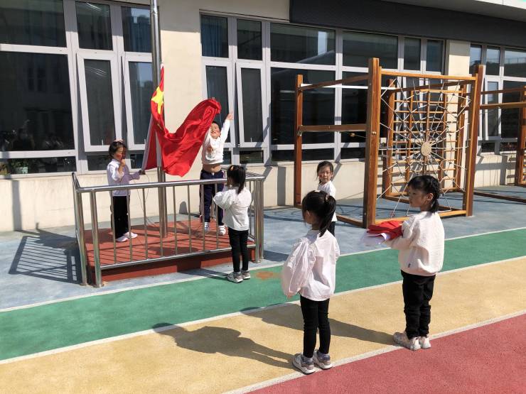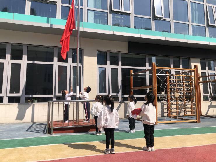 微风拂面,国歌嘹亮,鲜艳的五星红旗徐徐升起,大朋友、小朋友、老师伴随着国歌,行注目礼。爱国、爱园的种子在每一颗纯净的心灵深深扎根发芽。