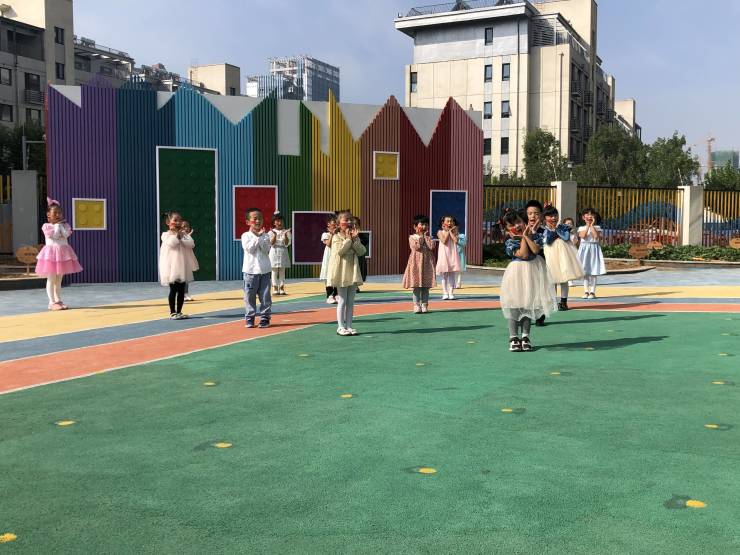 有个国家它很伟大,这里山美水美风景像幅画……声声话语,都表达他们内心的热情。孩子们用稚嫩的童声共同唱响祝福的歌曲,用最美的手势舞蹈表达自己心中赤诚的热爱……幼儿园里充满了欢声笑语 ,沉浸在欢乐的海洋中。