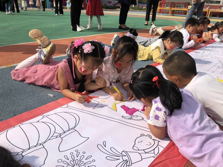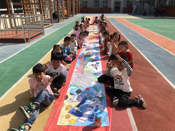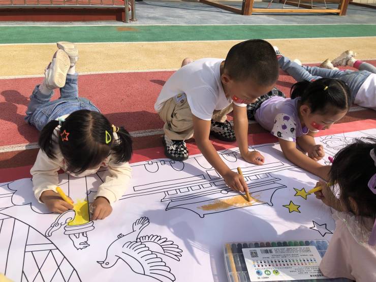 宝贝们用他们手里的小小画笔,在长长的画卷上画出对祖国妈妈的热爱和美好未来的向往,每一笔触都透着浓浓的爱国之心,每一根线条都洋溢着孩子们的祝福,每一抹色彩都体现着孩子们的童心。我们用自己的方式,祝福祖国妈妈,祝福我们的祖国繁荣昌盛!