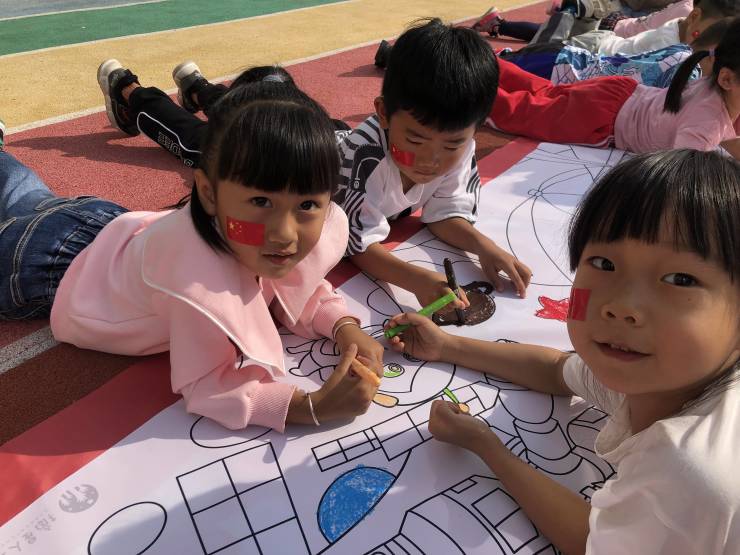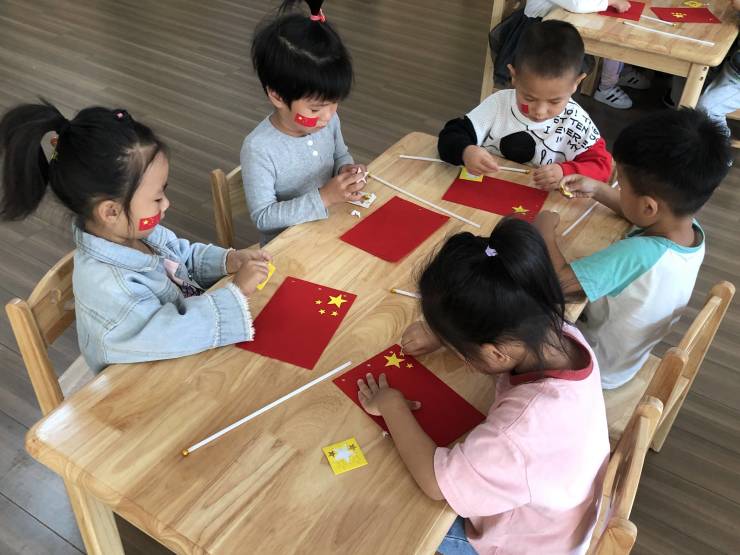 在这举国欢庆的日子里,五星红旗沐浴着秋日的暖阳,随风飘扬,孩子们在用对祖国妈妈的热爱与身为中华人民的骄傲动手制作着五星红旗,随后用自己独特的方式与国旗合影,一张张微笑的脸庞洋溢着童真与朝气,在国旗下绽放。
